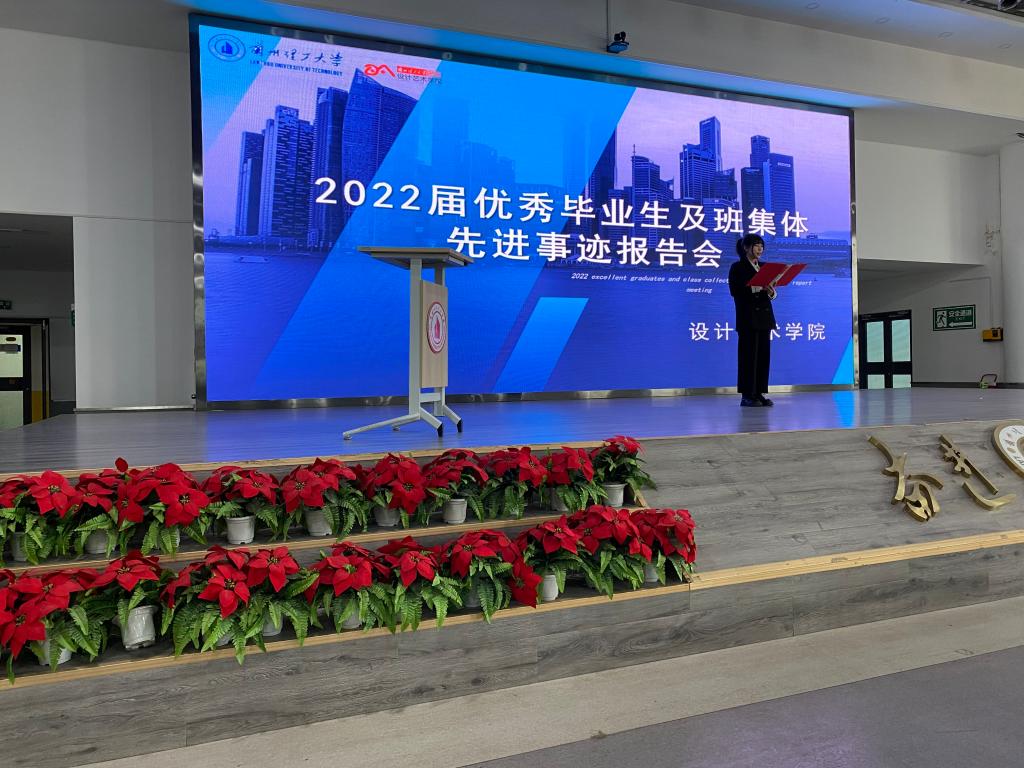 5月13日,设计艺术学院邀请2022届优秀毕业生、优秀学生干部代表,优秀班级代表在大学生活动中心以线上+线下的方式举办优秀毕业生及毕业班集体的先进事迹报告会。