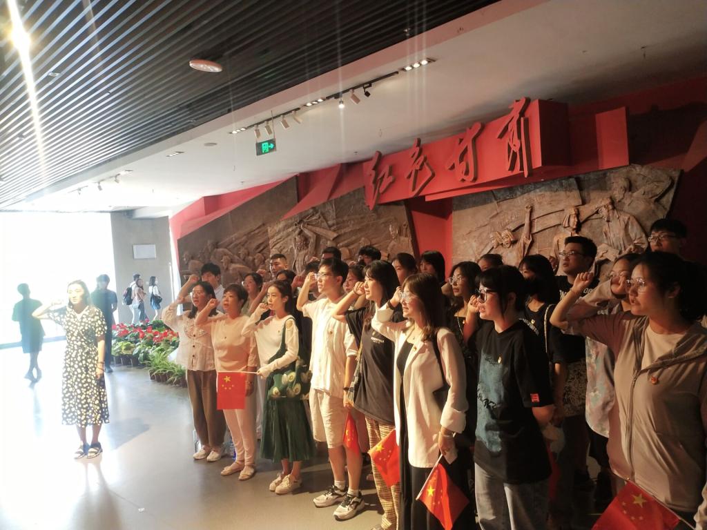学院副书记、学生支部书记、40位新党员共同参与本次主题党日活动。活动开始,组织新发展党员在博物馆红色厅党旗前举行新党员入党宣誓仪式,大家面向党旗庄严宣誓。