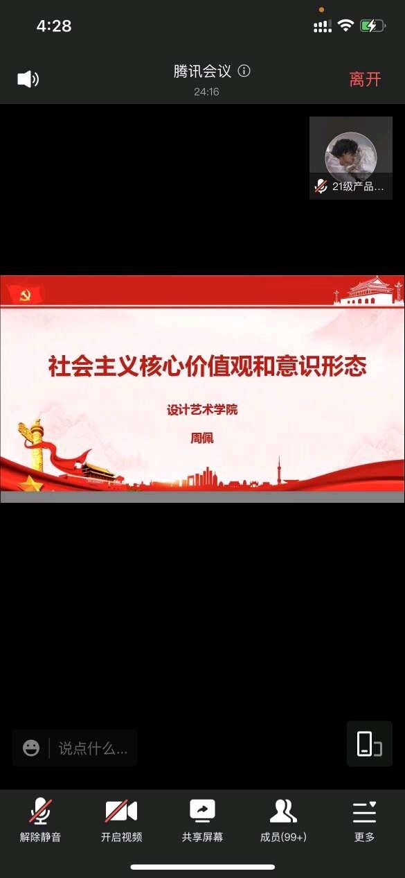 近日,设计艺术学院学生党总支开展线上专题党课,由学院辅导员周佩老师授课,带领全体学生党员集中学习社会主义核心价值观。