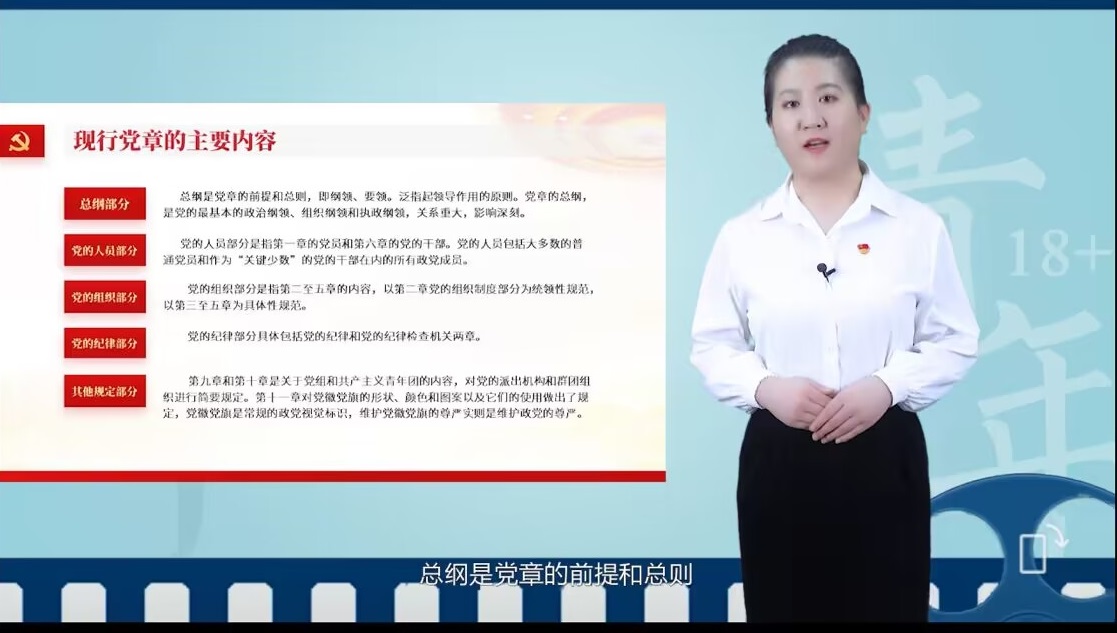 第一,观看学习新青年18+系列微党课《学党章 筑信仰》。辅导员宋美瑾在党课中对党章的主要内容进行了全面梳理。