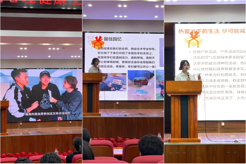 赛上,2021级视觉传达设计团支部团支书韩欣蓉以《生命健康与幸福人生》为主题,用饱满的热情讲述了班级在主题团日活动过程中遇到的趣事和问题。讲述过程引人入胜,赢得台下同学和老师们的阵阵掌声。结合专业特长,韩欣蓉同学把此次主题团日活动的瞬间记录下来制作成帆布包和收集支架,分发给班级成员以作纪念。此次心理健康主题团日活动大赛旨在传播心理健康的知识和理念,活动引导大学生认识并接纳自己的心理压力,以实际行动指导同学们提高心理素质,展现我院学子的优良风采。
