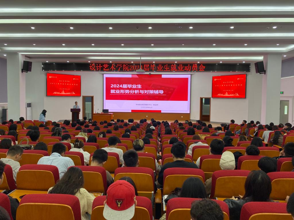 近日,设计艺术学院2024届毕业生就业动员暨求职辅导专题会在兰工坪校区图书馆二楼报告厅举行。学校就业指导服务中心主任杨金明、指导老师马文静,设计艺术学院党委书记吴学楷、院长刘奔腾,2024届全体毕业生、班主任、辅导员参加活动。学院党委副书记刘汉青主持会议。