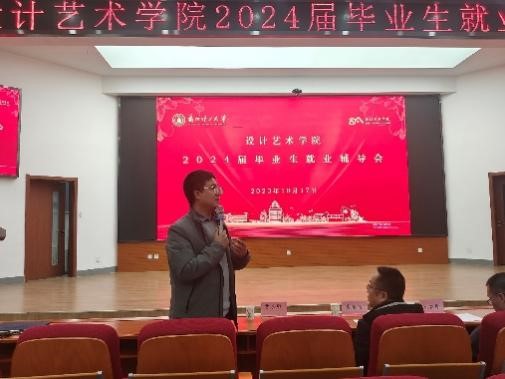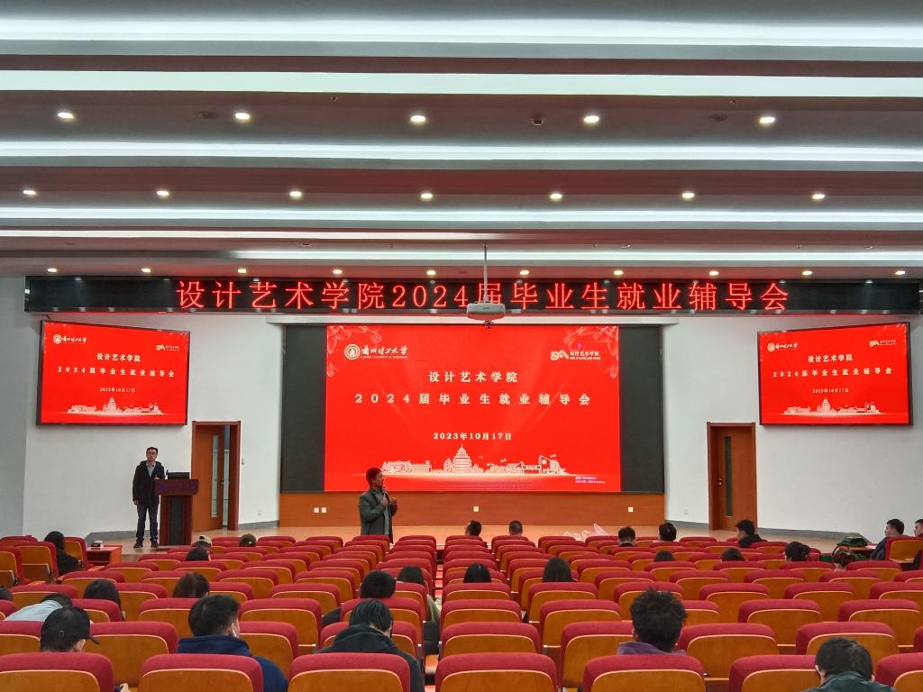 10月17日下午,设计艺术学院在兰工坪校区图书馆二楼报告厅召开了2024届毕业生就业辅导会。学院党委书记吴学楷,院长刘奔腾,经济管理学院辅导员贾永胜出席辅导会。学院党委副书记刘汉青主持会议。