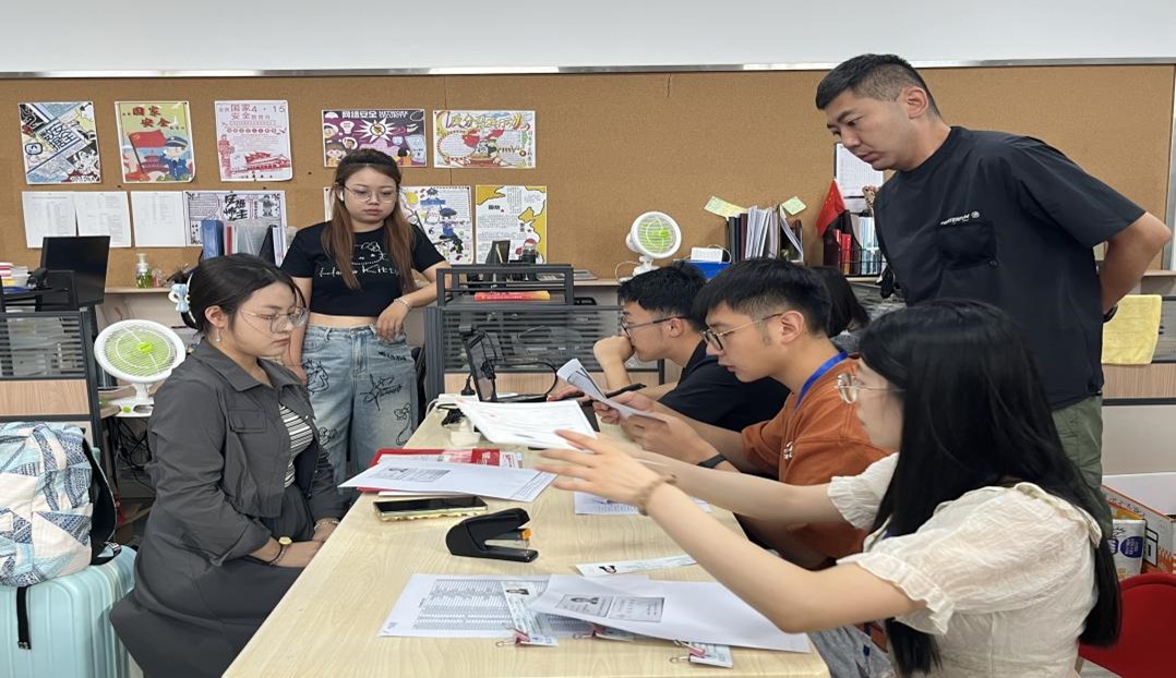 在琢玉楼129办公室报到注册点,志愿者们与辅导员老师紧密协作,确保注册流程高效有序进行。同时,学院还为每位新生准备了入学指南、研究生手册等实用资料,帮助他们快速熟悉校园环境,为未来的学习生活做好准备。