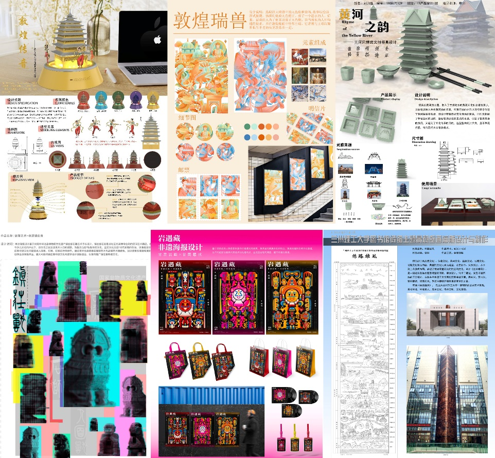 我院在本次大赛中共获得金奖11项、银奖17项、铜奖20项、入围奖59项。其中,由王鹏副教授、白兴易副教授指导、陈飞、李军涛同学共同完成的《“敦煌传音”-基于甘肃敦煌主题文化的蓝牙音箱设计》等4件作品获得文创产品设计类金奖;由王春霞副教授、薛静老师指导、莫楠、王伟同学共同完成的《POP·兰州太平鼓》等6件作品获得视觉创意设计类金奖;由雷兴福副教授完成的《丝路雄风》作品获得文化创意空间类金奖。同时,由于赛事组织工作优秀,我校获“最佳组织奖”。