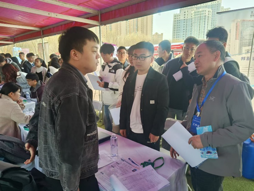 参加双选会的我院毕业生积极与用人单位交流沟通,根据招聘单位的专业工作需求投递求职简历、沉着应聘。用人单位招聘人员耐心为学生们答疑解惑,积极沟通签约、职业成长发展等相关方面的事宜。学院领导与现场招聘单位进行了面对面交流,详细了解用人单位需求,与相关企业建立了长期合作关系。本次双选会,我院共有两百余位毕业生参加,投递简历一千余次,共向103家用人单位表达就业意愿。