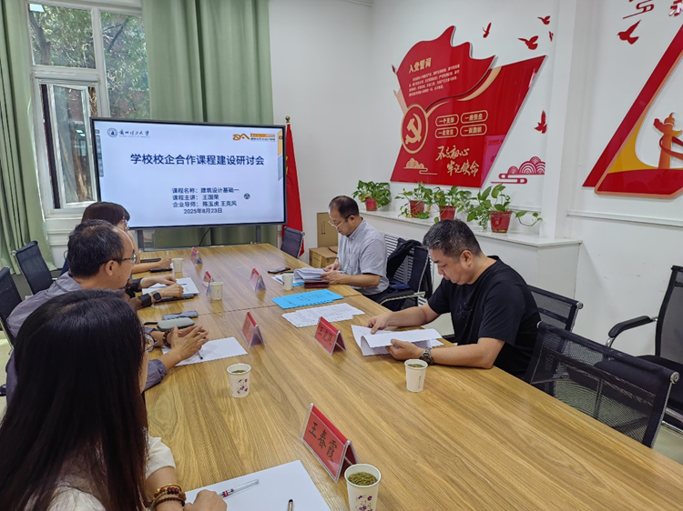 为积极推进产教融合,将企业优秀的资源融合到设计课程的教学中,加快提升建筑学专业人才培养质量,8月23日上午,建筑与艺术设计学院建筑学系邀请设计基础课程企业导师兰州市城乡规划设计研究院副院长陈玉虎高级工程师、以及规划三所所长王克风高级工程师,在兰工坪校区槐园 A105 会议室,针对《建筑设计基础一》课程召开了校企合作课程建设研讨会,会议由课程主讲老师王国荣主持,学院教学办、建筑学系主任及相关教师参加座谈。