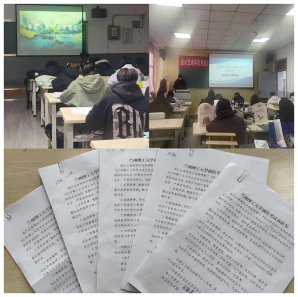 为进一步加强学院考风学风建设,2025年11月16日,建筑与艺术设计学院各班级召开“诚信考试和选课规范”主题班会,以强化学生考场规则意识,同时为期末备考及后续选课、学业规划进行规范指导。全体同学在班会现场共同签署《兰州理工大学诚信考试承诺书》。
