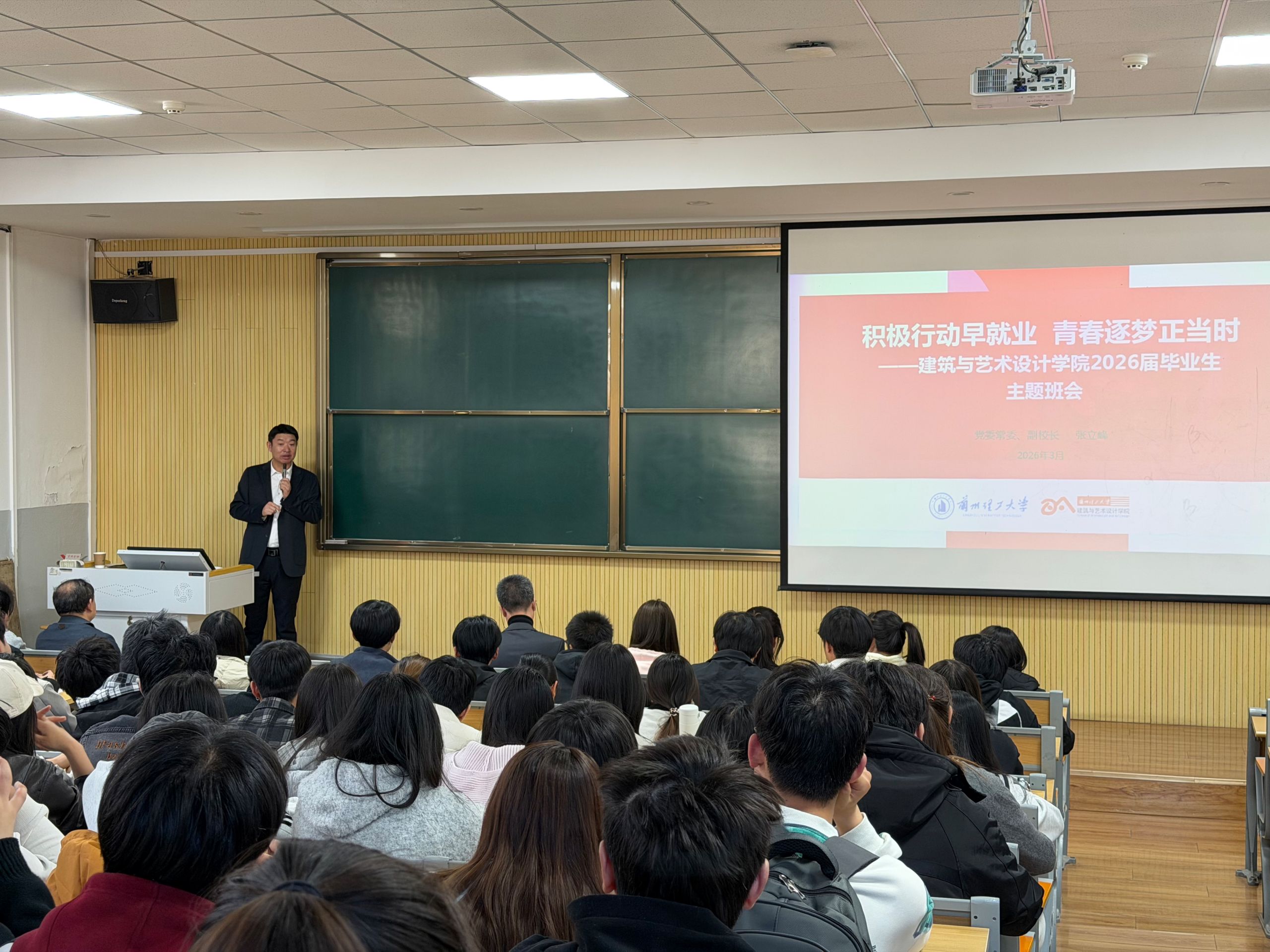 为扎实推进学校就业攻坚行动,精准开展毕业生就业指导服务,3月10日,学校党委常委、副校长张立峰受邀为建筑与艺术设计学院讲授就业主题班会。学院领导班子、全体辅导员、部分毕业生参与班会。