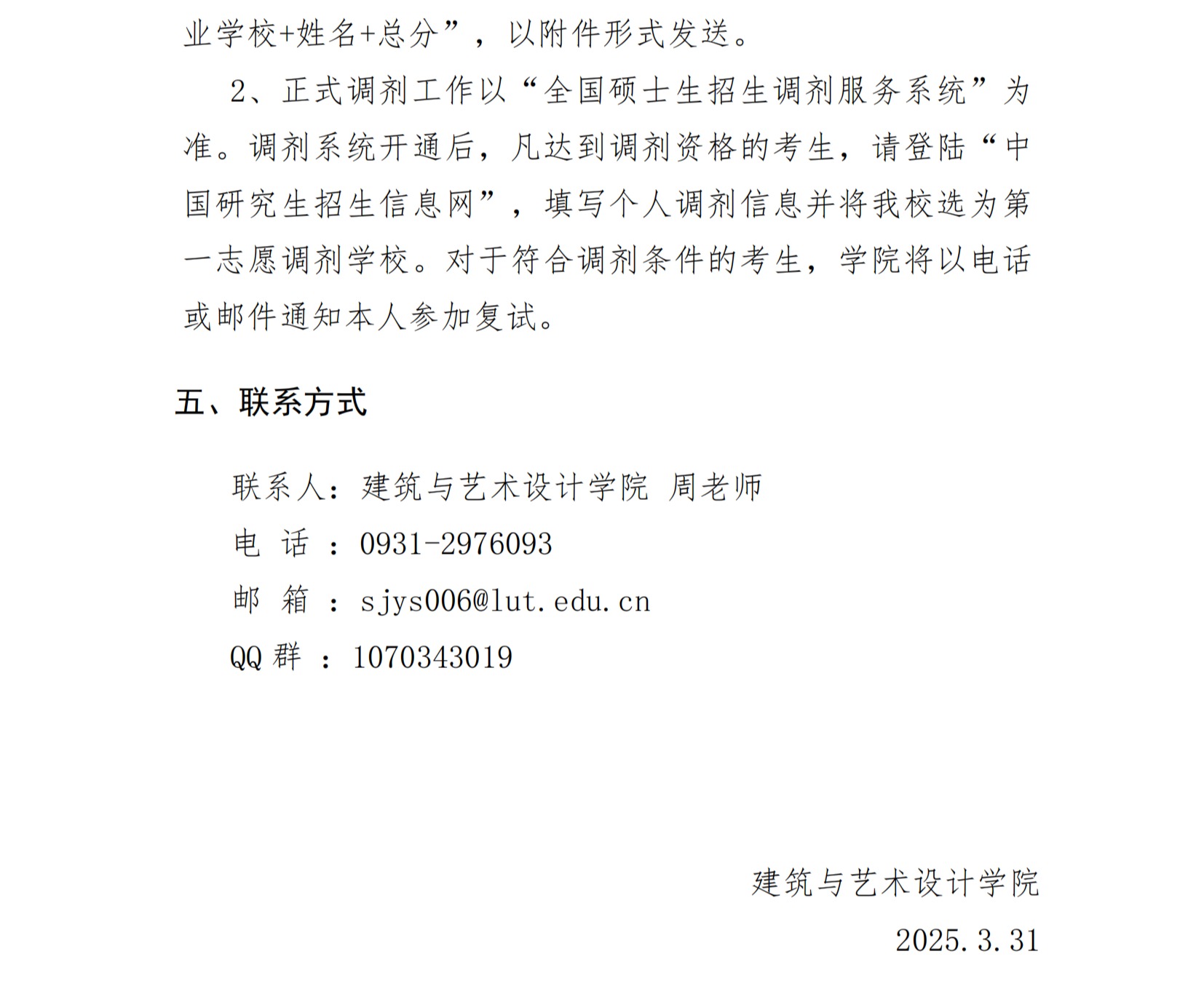2025年兰州理工大学建筑与艺术设计学院硕士研究生招生调剂复试录取工作安排