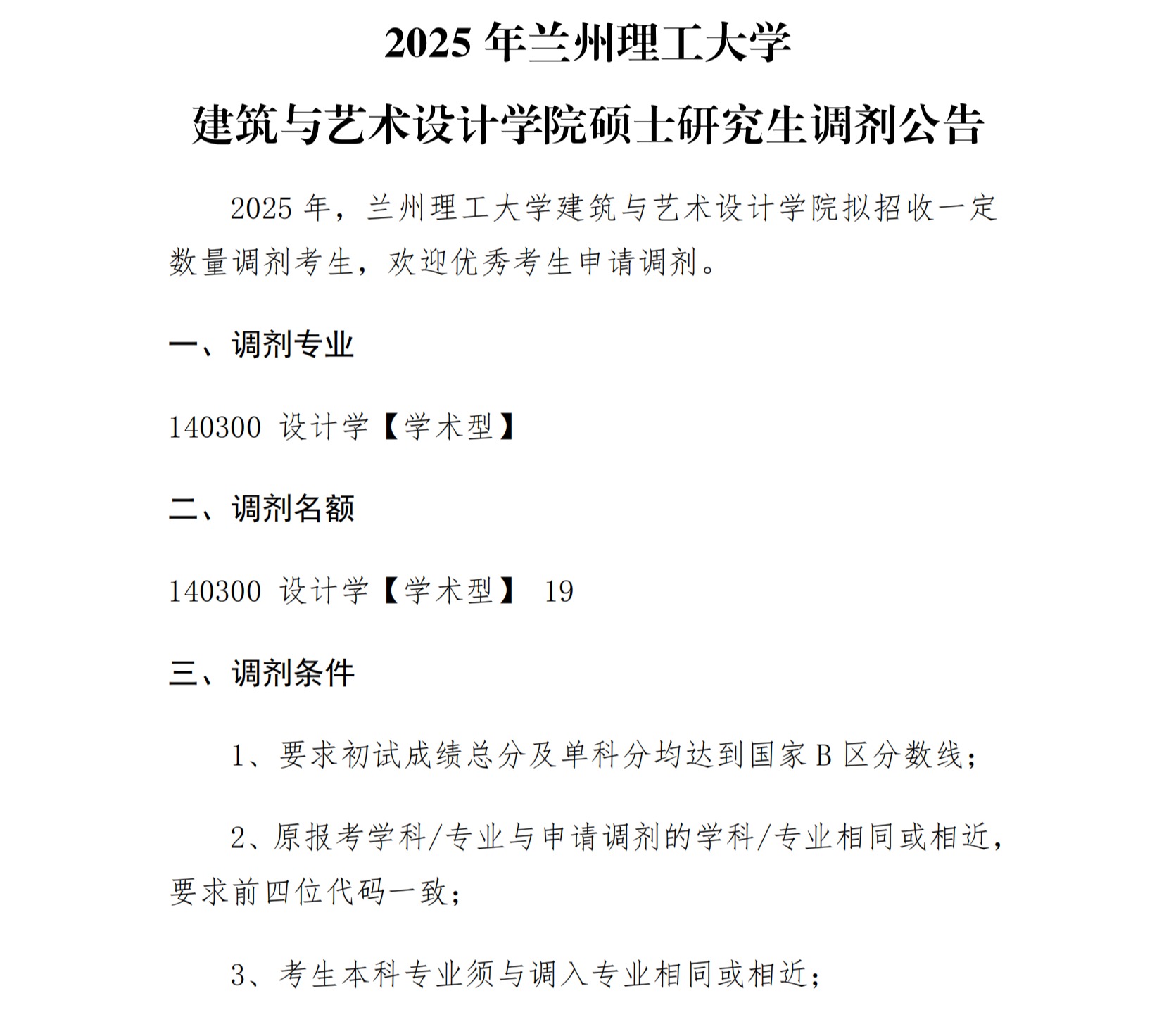 2025年兰州理工大学建筑与艺术设计学院硕士研究生调剂公告