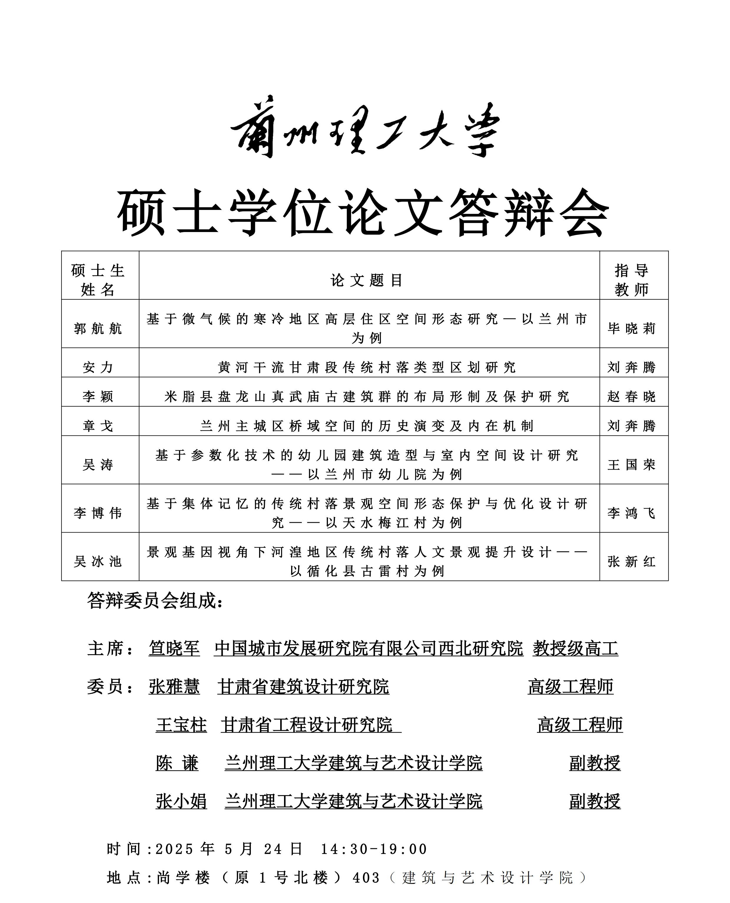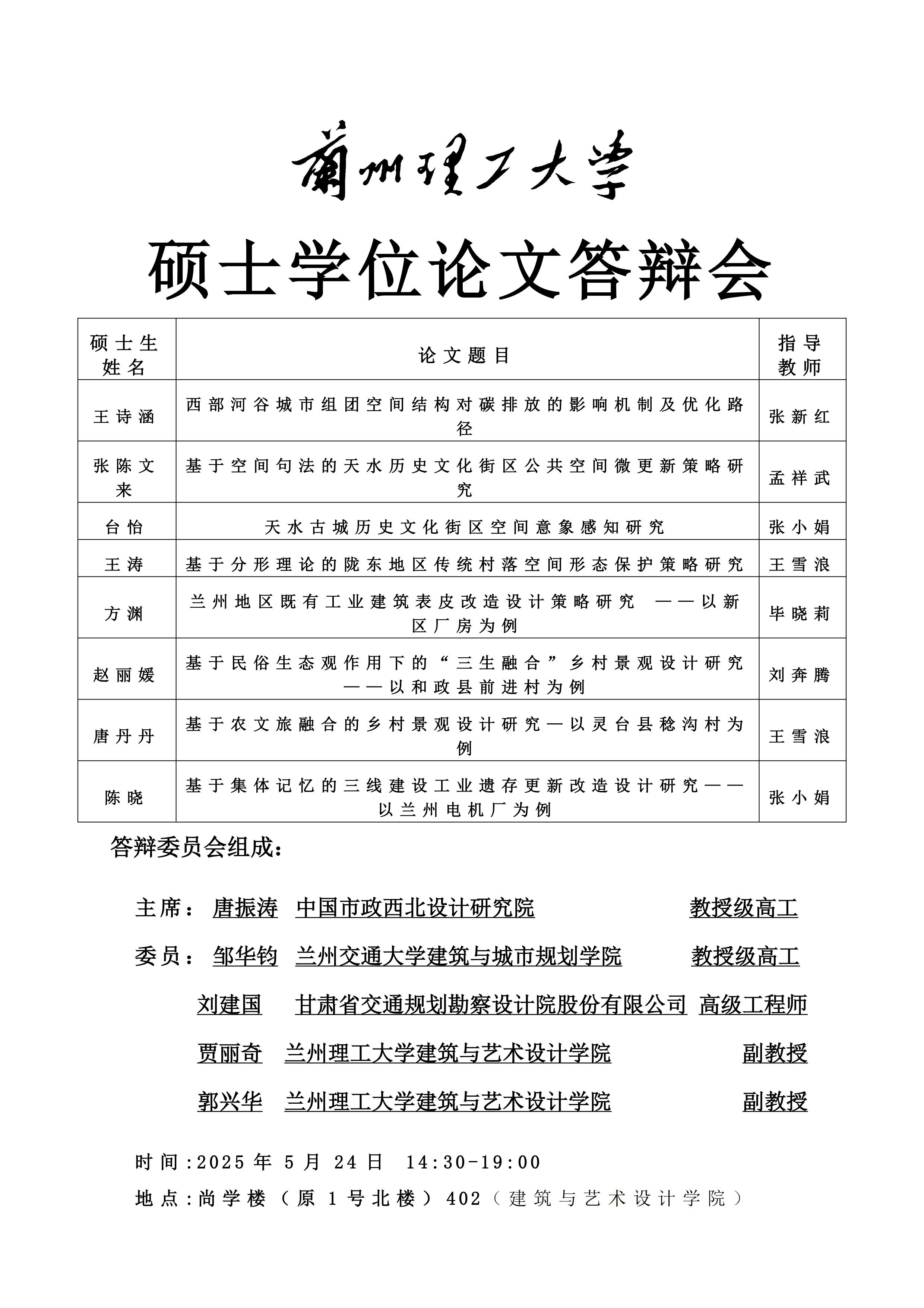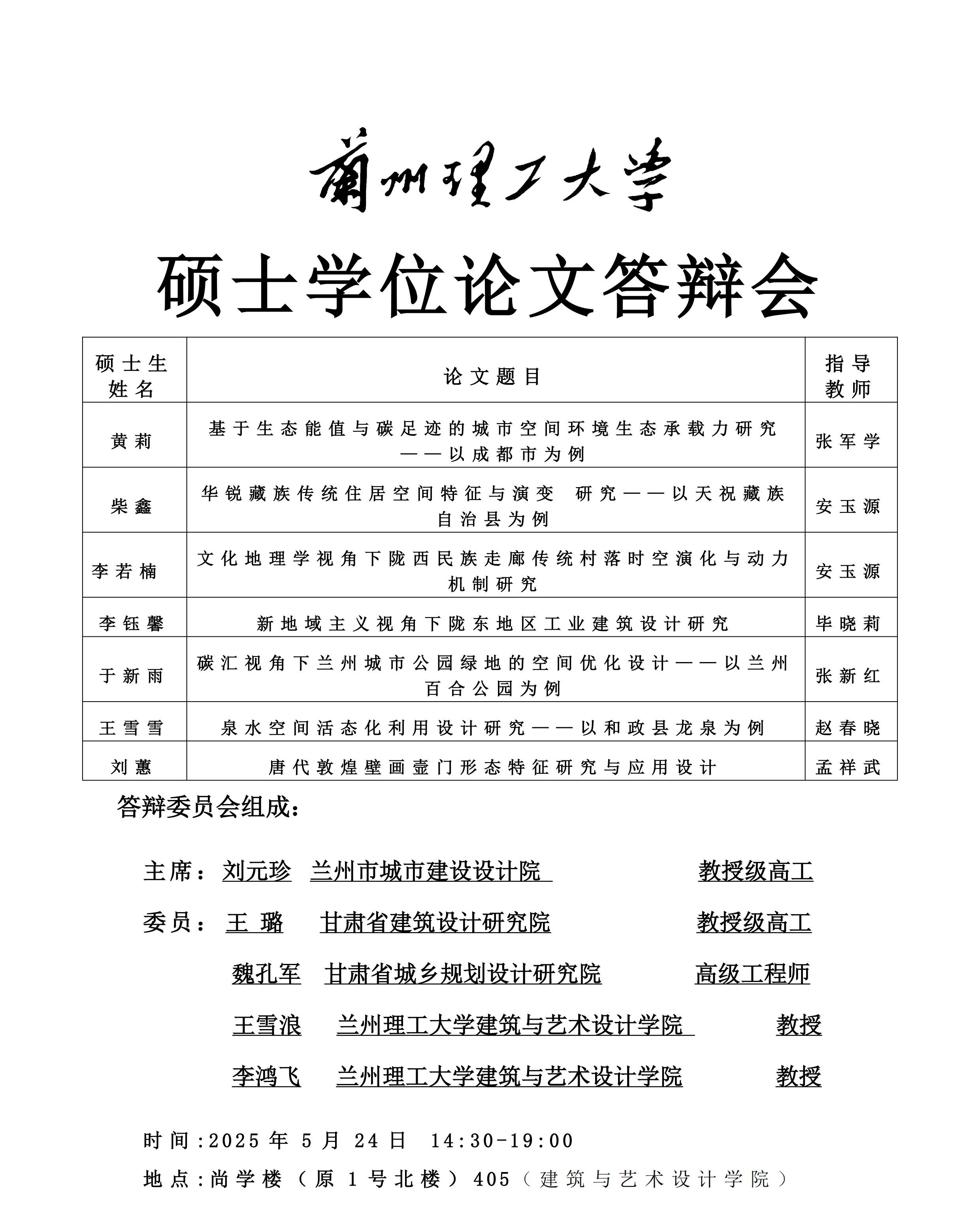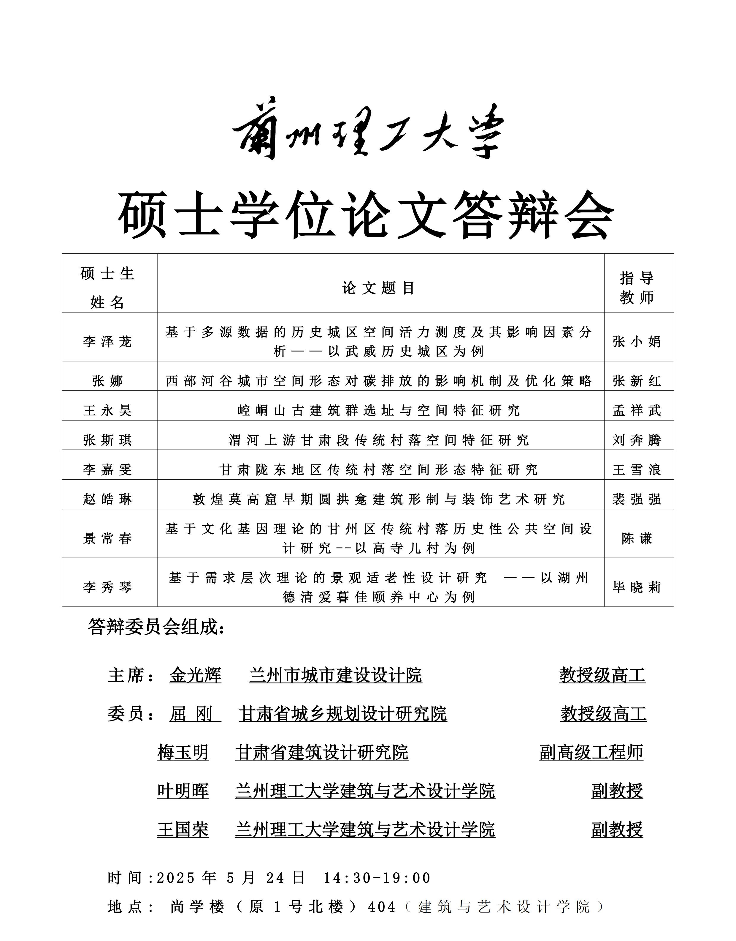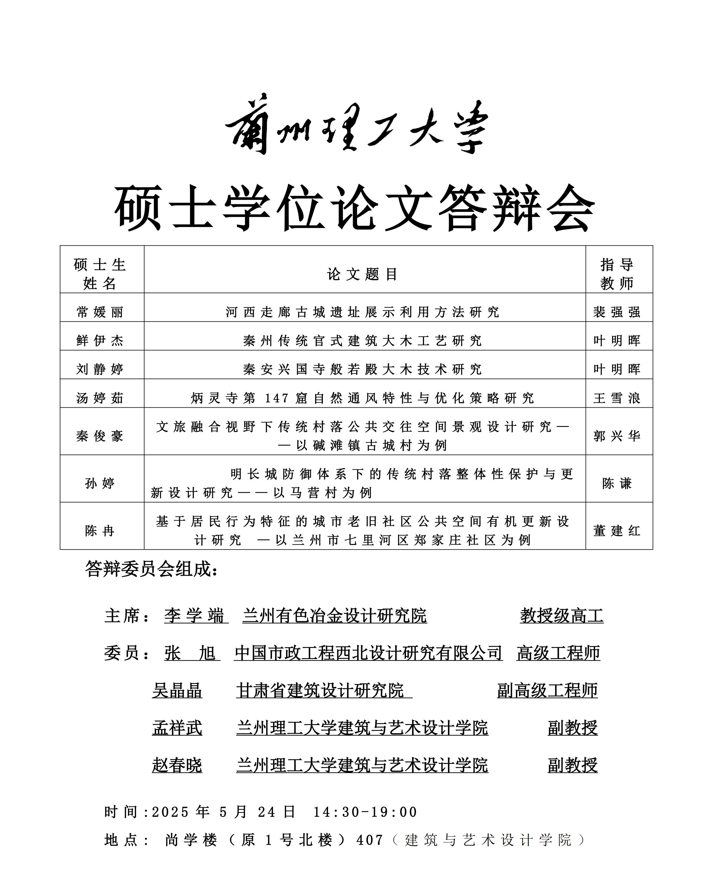 建筑与艺术设计学院硕士学位答辩海报(建筑学组)