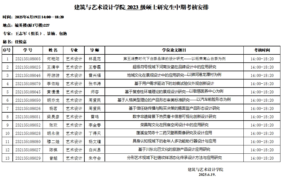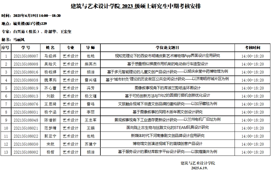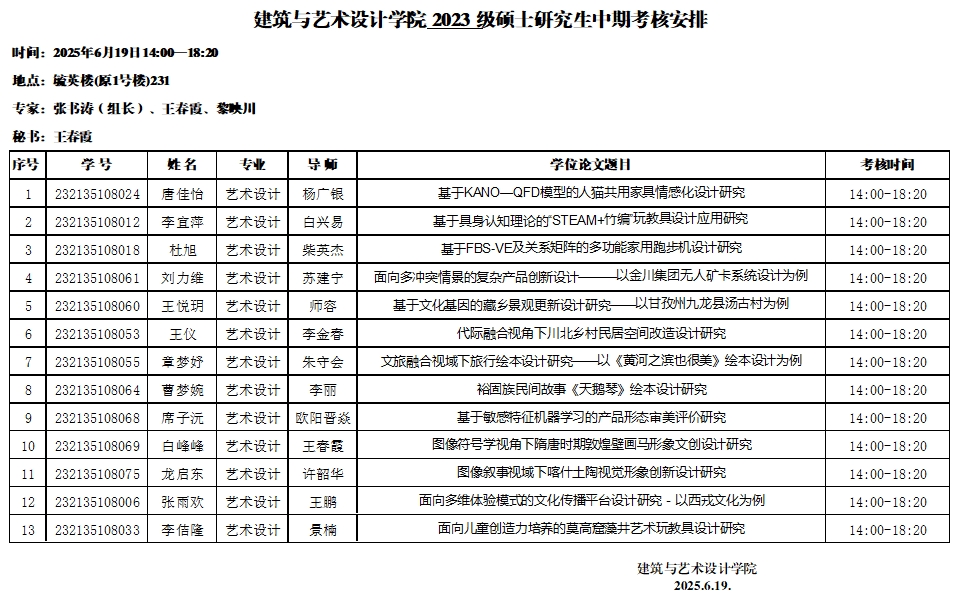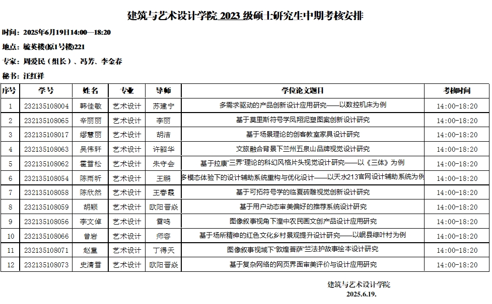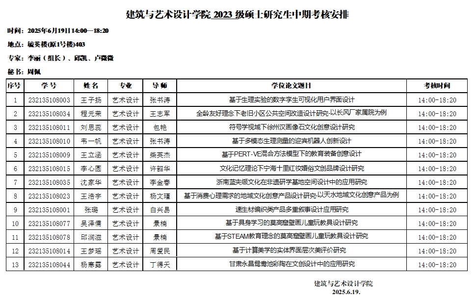 建筑与艺术设计学院硕士研究生中期考核安排 艺术设计共5组