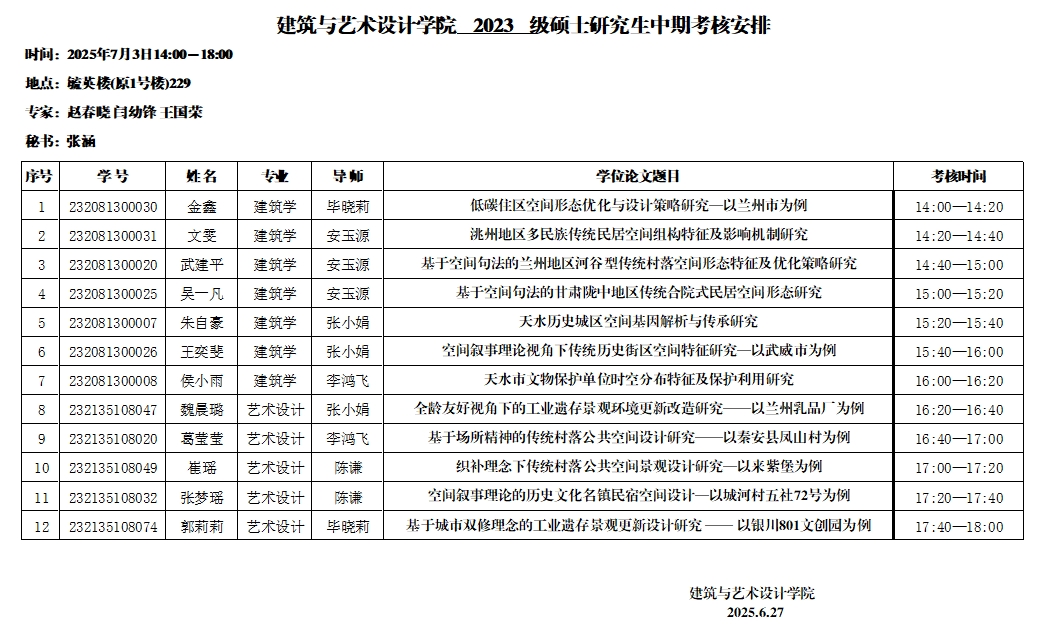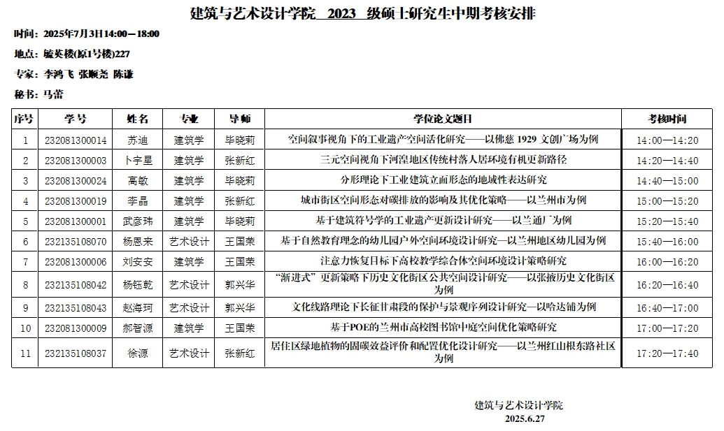建筑与艺术设计学院2023级硕士研究生中期考核安排(建筑学、艺术设计)