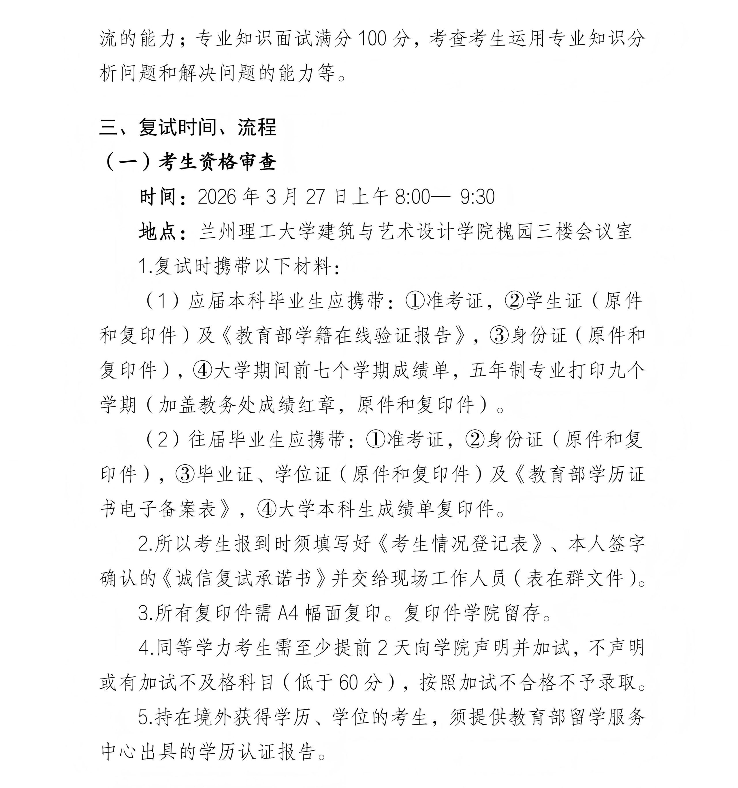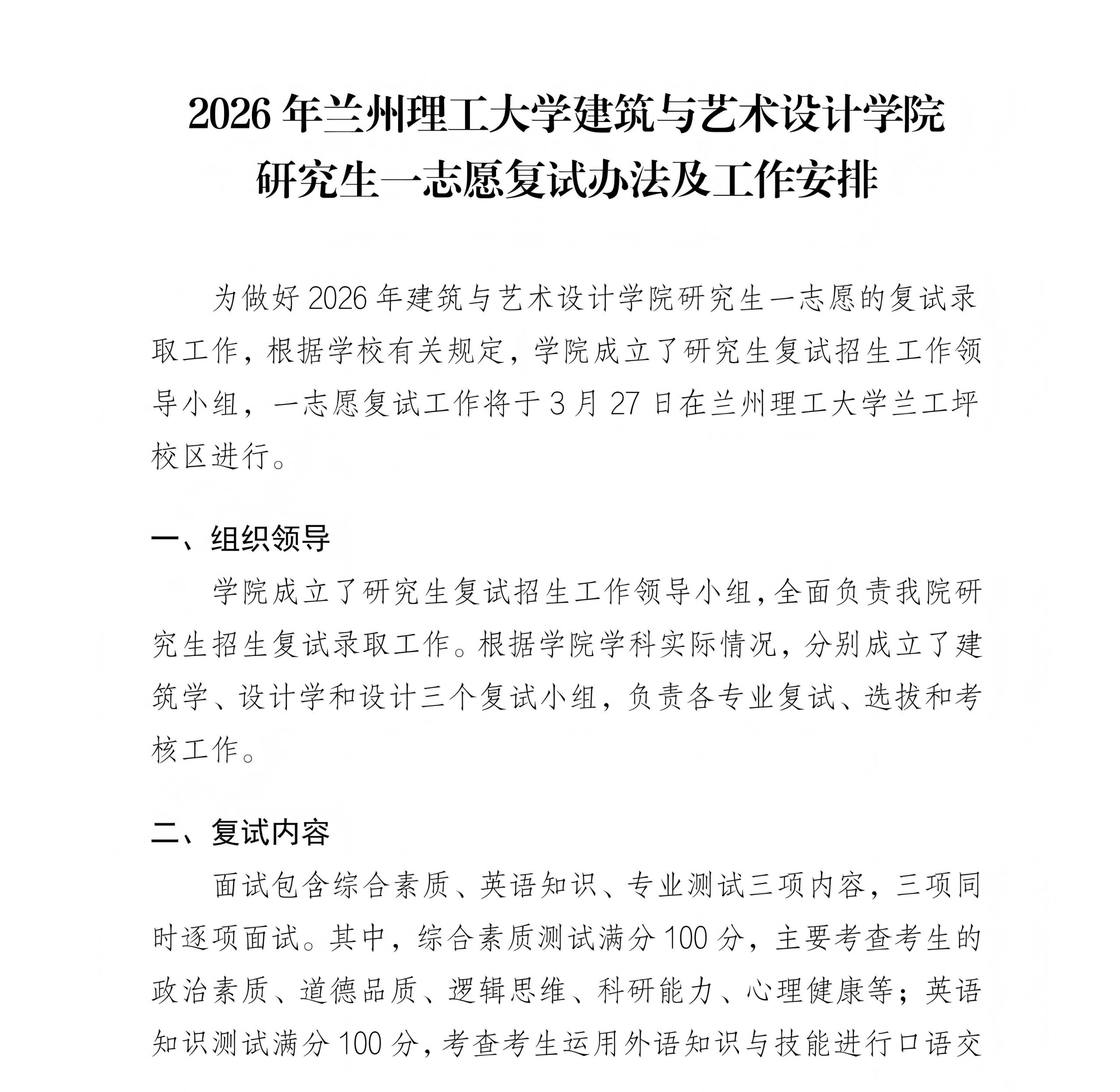 2026 年兰州理工大学建筑与艺术设计学院研究生一志愿复试办法及工作安排